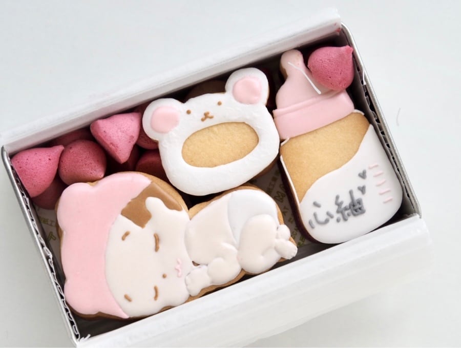 赤ちゃんのアイシングクッキーが愛らしいクッキー缶です。